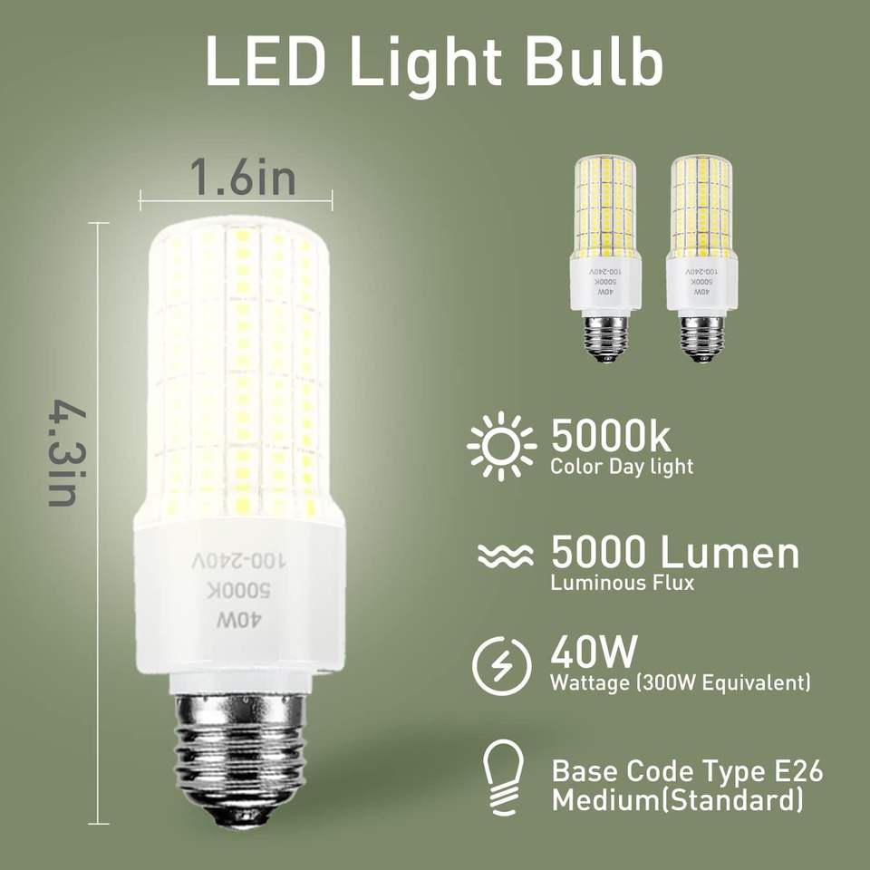 Lot de 2 ampoules LED 40W équivalentes à 300W, 5000 lumens, 5000K, blanc lumière du jour, culot moyen E26/E27, utilisation intérieure et extérieure