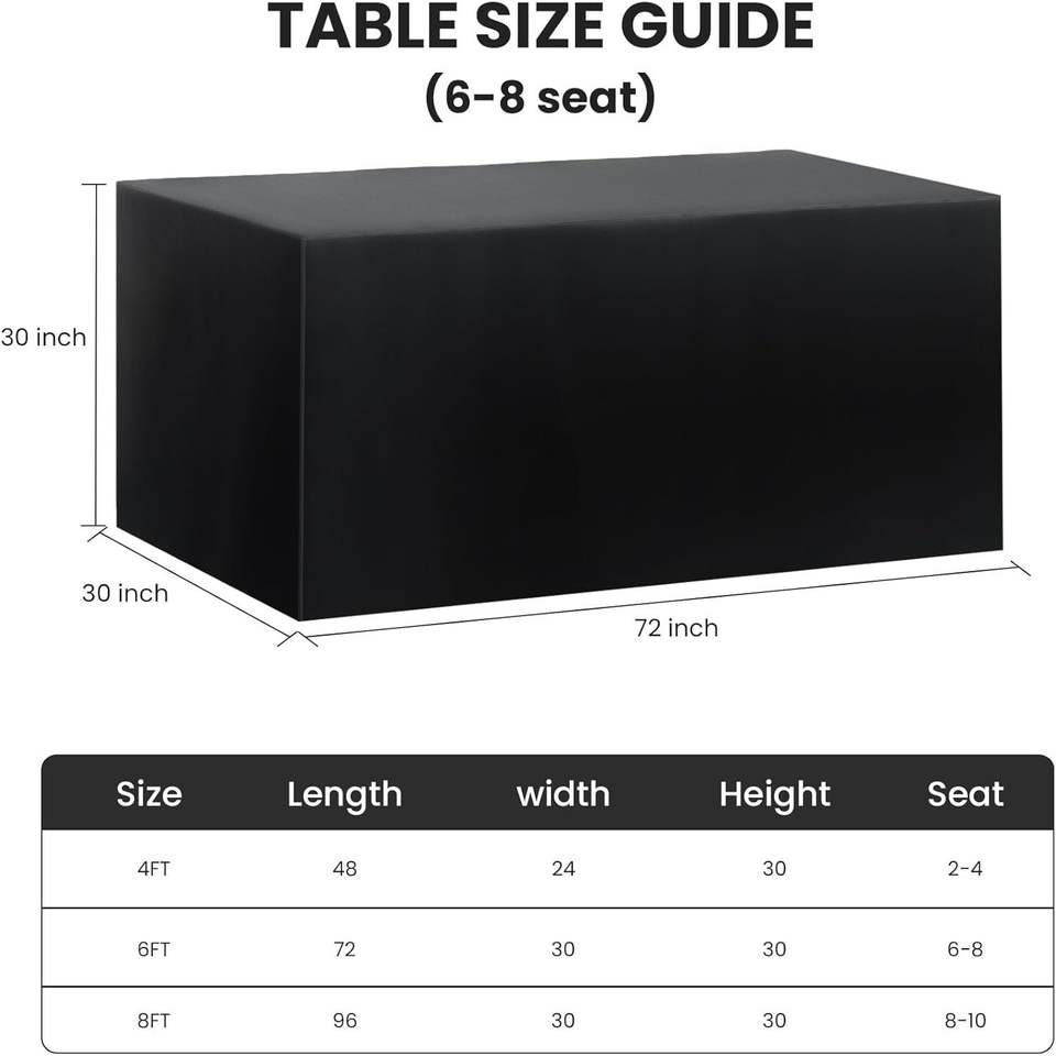 Lot de 2 nappes rectangulaires de 6 pieds (72 x 30 pouces) en polyester noir résistant à l'eau, housses ajustées et draps plats pour tables