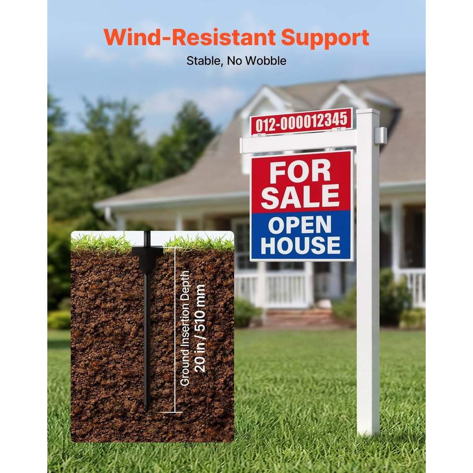 Lot de 2 poteaux de signalisation immobilière en PVC de 1,80 m de haut, support de panneau de 91 cm pour jardin et pelouse, installation facile, résistant au vent, pour agents immobiliers, poteau de signalisation de 61 cm