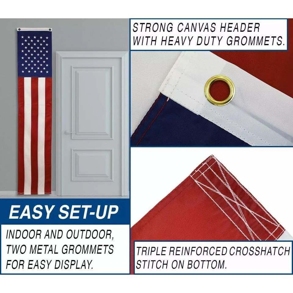 Lot de 2 guirlandes de drapeaux américains à suspendre, 50 étoiles brodées, 5 bandes entièrement cousues, 20 po x 8 po, guirlande patriotique décorative en nylon