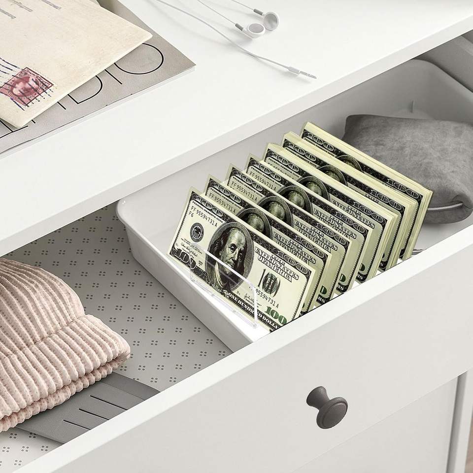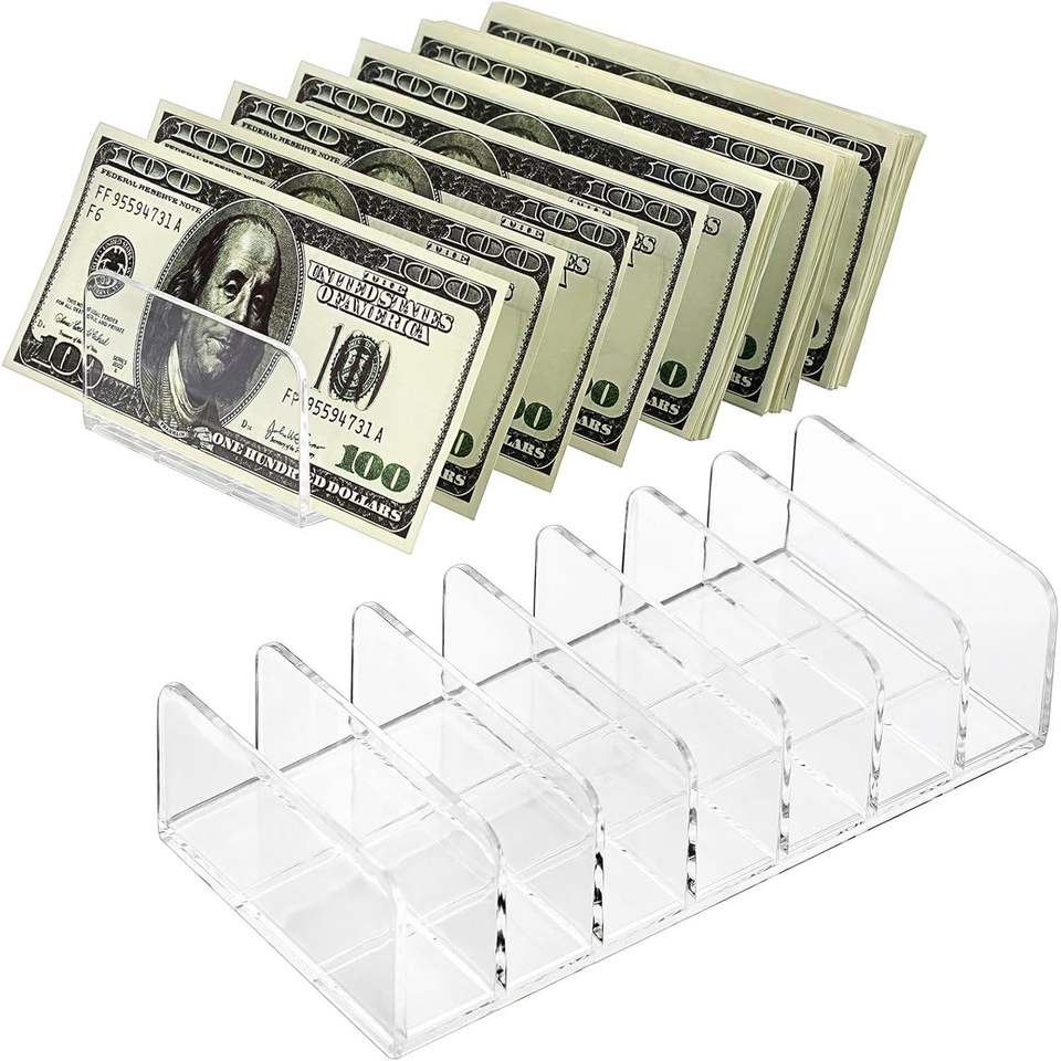 Lot de 2 organiseurs de bureau et de tiroirs en plastique transparent, avec plateau pour courrier et argent, 7 compartiments, séparateur de factures, porte-enveloppes