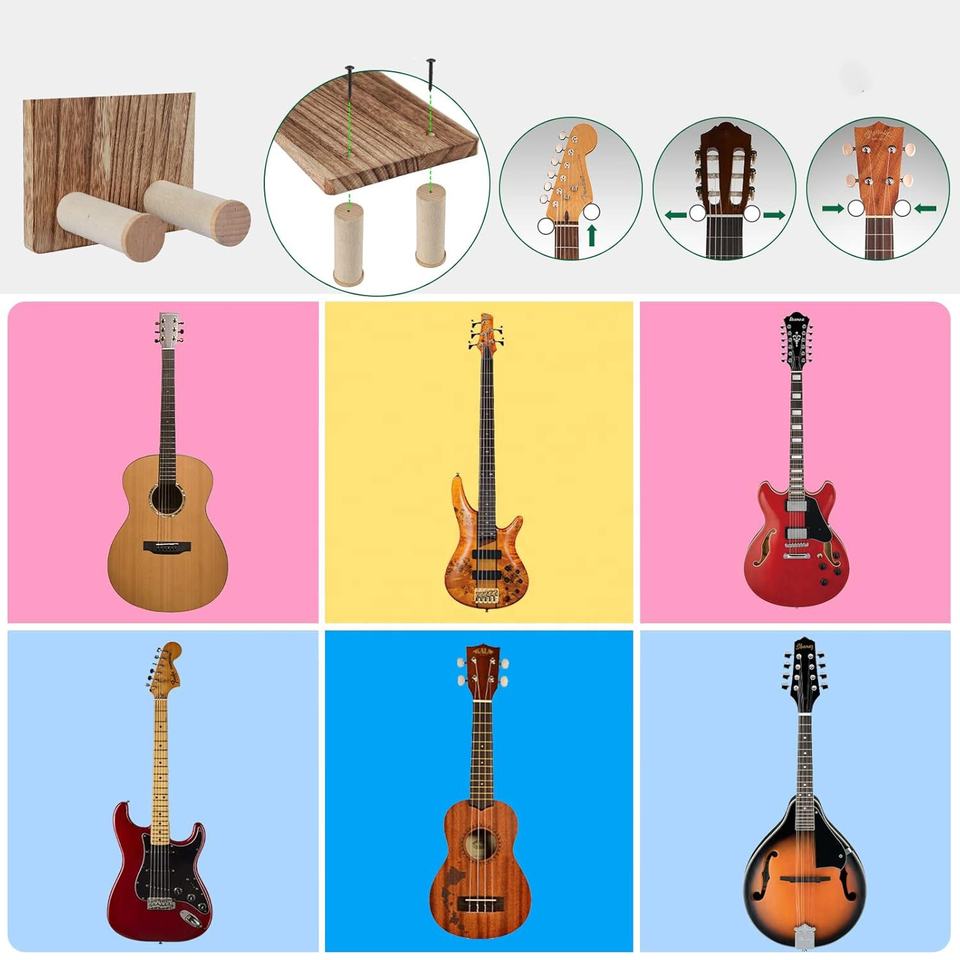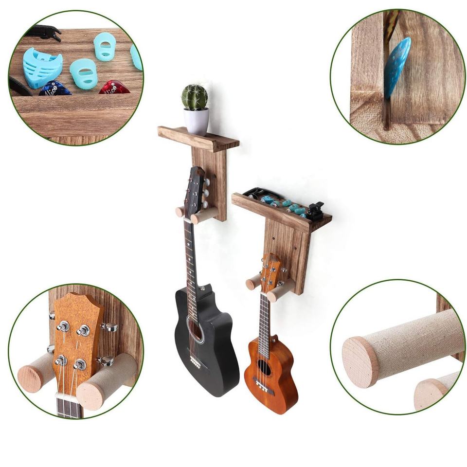 Lot de 2 supports muraux durables en fer rustique pour guitare, étagère porte-plectrums, crochet mural en bois pour guitares acoustiques/électriques/basses/ukulélés