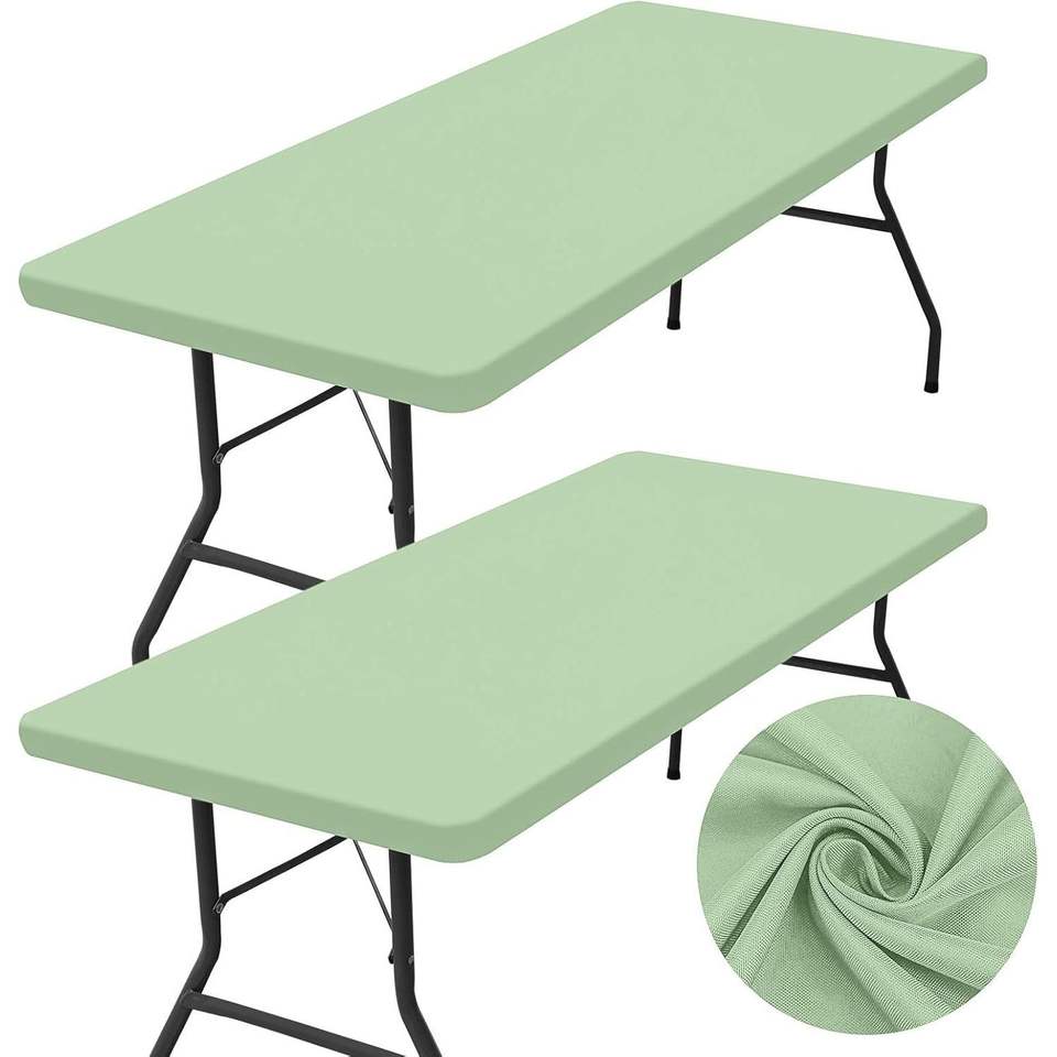 Lot de 2 nappes rectangulaires en tissu élastique ajustées, lavables, pour table pliante d'extérieur de 6 pieds, pour pique-nique, pour tables de 6 pieds