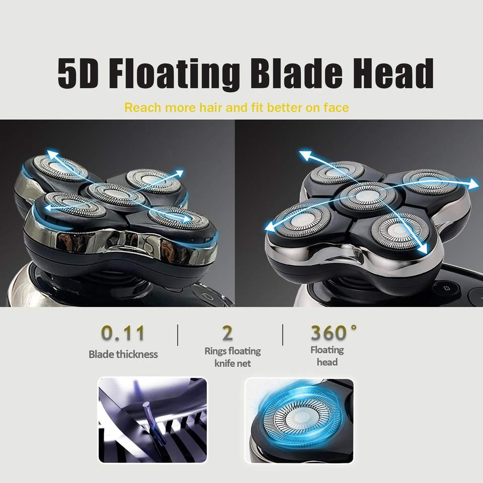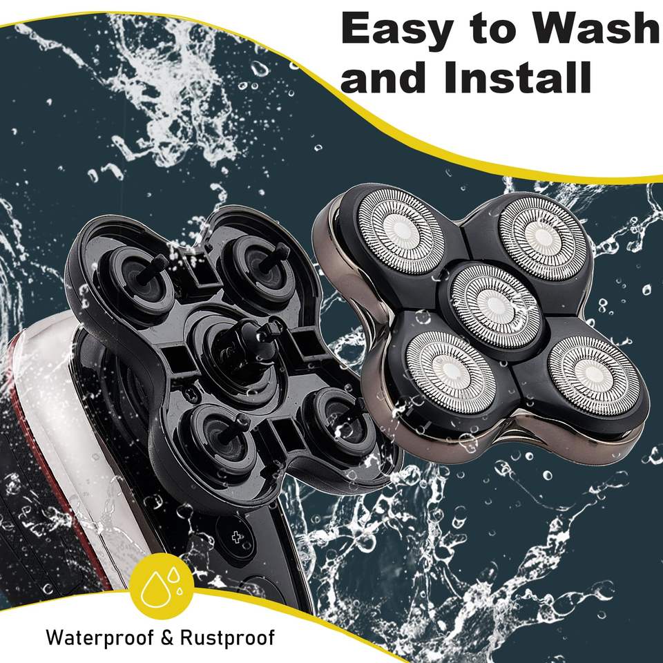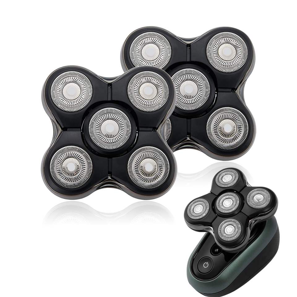 Lot de 2 têtes de rasoir électriques de rechange compatibles avec les rasoirs rotatifs à cinq lames pour le rasage du visage et du corps
