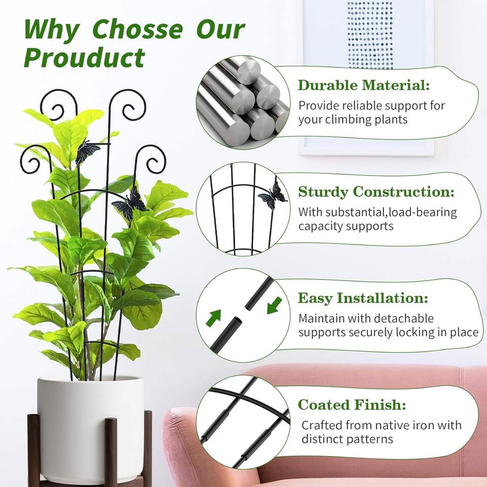 Lot de 2 treillis de jardin extensibles en métal, finition laquée, support robuste pour plantes grimpantes d'intérieur, fleurs, vigne, lierre, attaches incluses