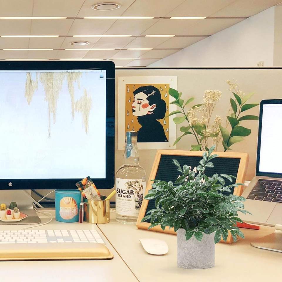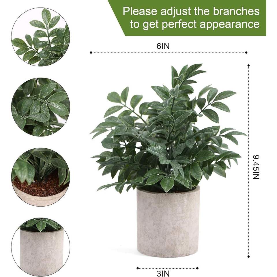 Lot de 2 plantes artificielles grises en pot, petites fausses plantes pour étagère, bureau, maison, ferme, chambre, table basse, décoration