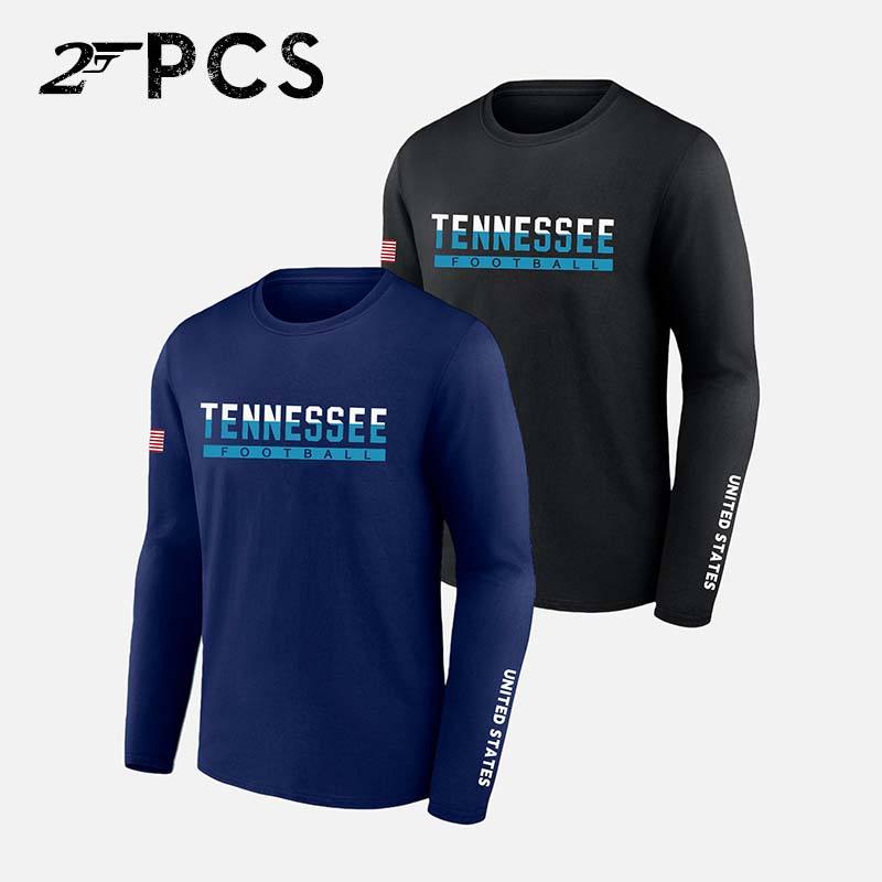 Lot de 2 T-shirts à manches longues pour hommes, taille plus, football américain, col rond, imprimé, séchage rapide, design Kansas City