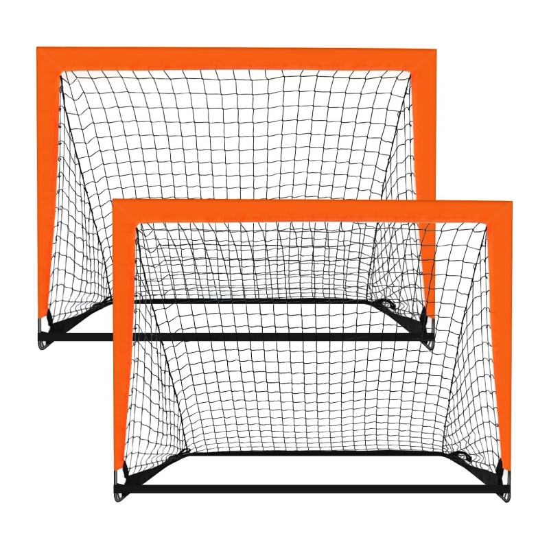 2 Pack Orange Portable Kid Soccer Goal Backyard Indoor Outdoor Foldable Soccer Goals