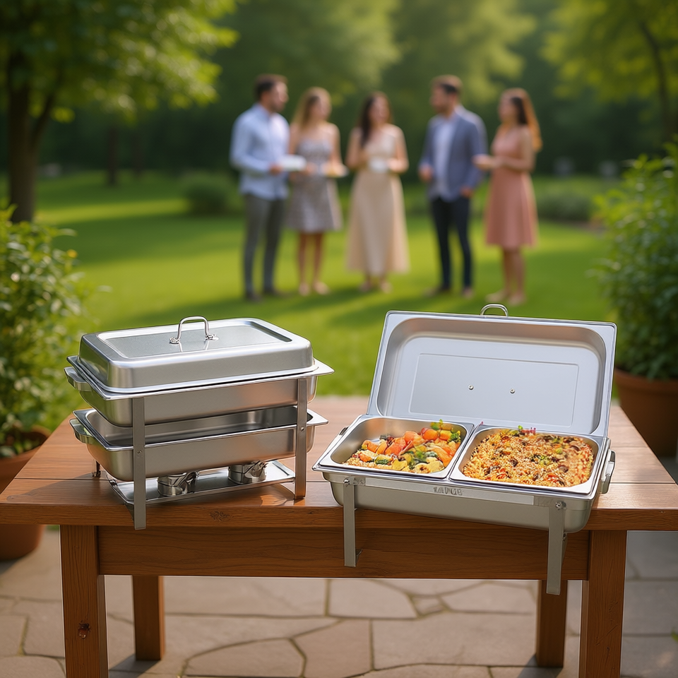 Vevor Lot de 2 réchauds rectangulaires 8 Qt en acier inoxydable, compatibles lave-vaisselle, pour service de boissons