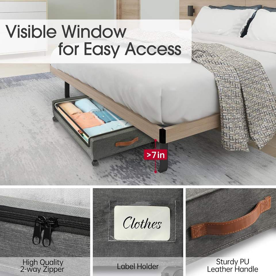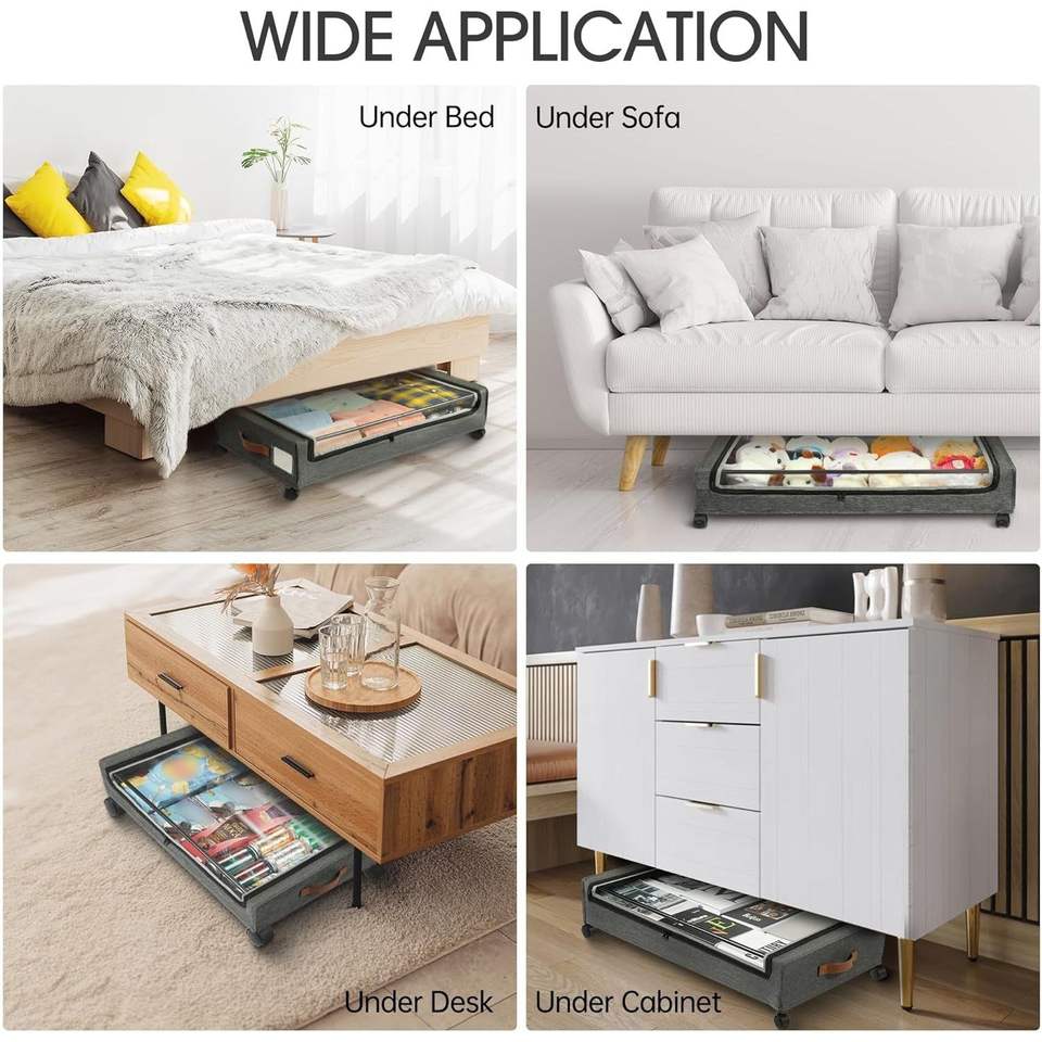 Lot de 2 tiroirs métalliques roulants pour rangement sous le lit, organisateur de chaussures et de rangement avec roulettes, conteneurs de rangement sous le lit