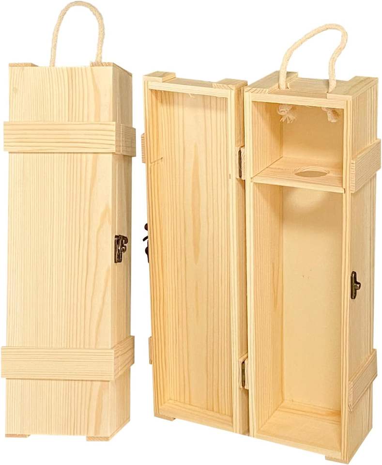 2 packs de boîtes à vin en bois pour bouteille unique Boîte nautique en bois non fini pour le vin Caisse en bois naturel avec poignée en ficelle pour l'artisanat