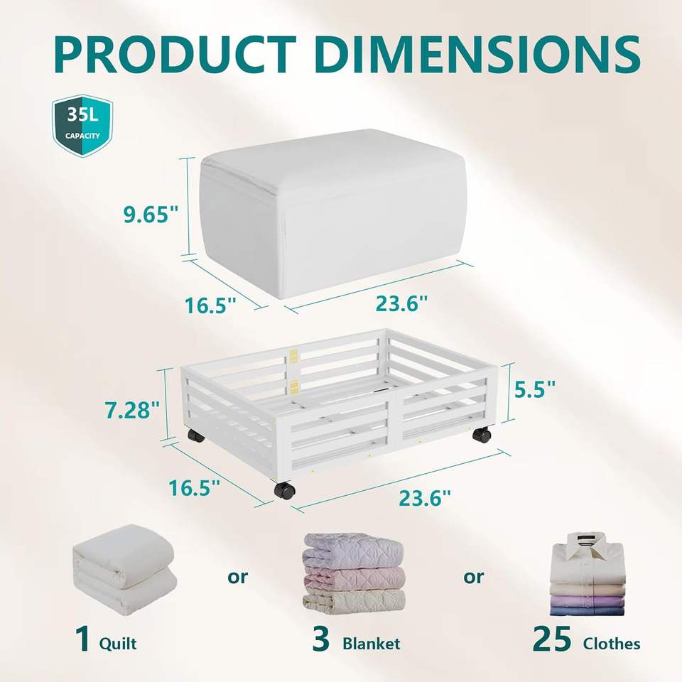 2 packs de conteneurs de rangement sous le lit en bambou grande capacité, organisateur sous le lit avec roulettes