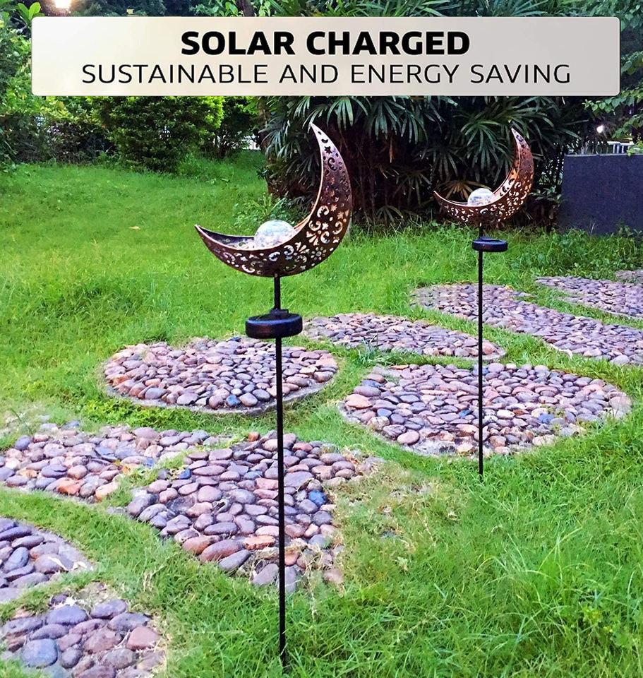 2 paquets de lumières solaires d'extérieur pour sentier décoratif Moon cracked Glass Globe Garden Lights Stake Metal Light for Garden Yard Patio
