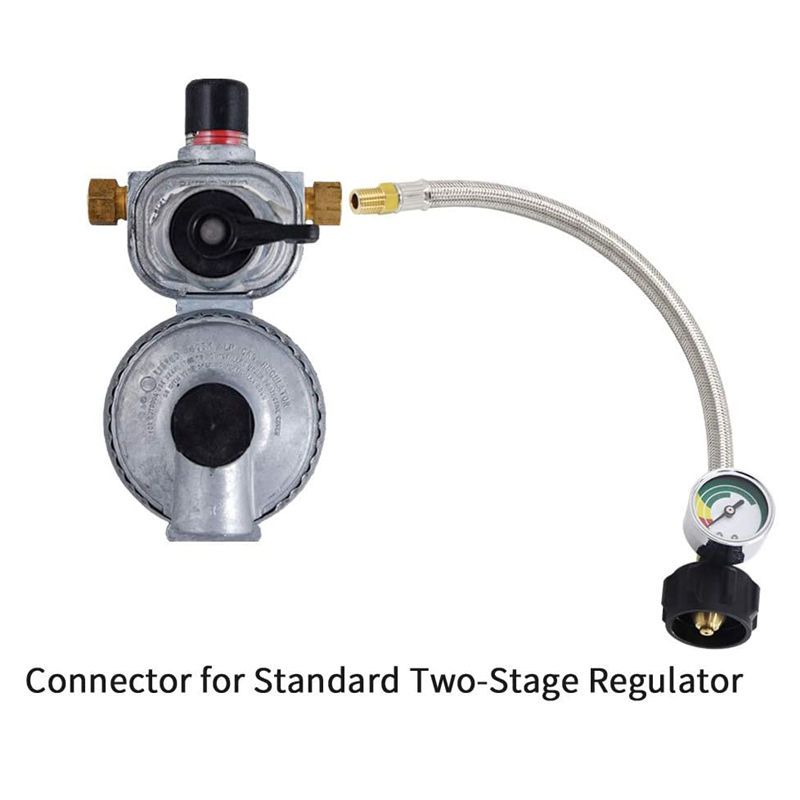 2-Packs Stainless Steel Braided Propane Tank Hoses Gauge Standard Two-Stage Regulator Upgraded Pigtail Design Smooth Surface