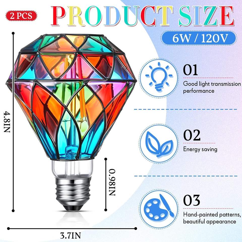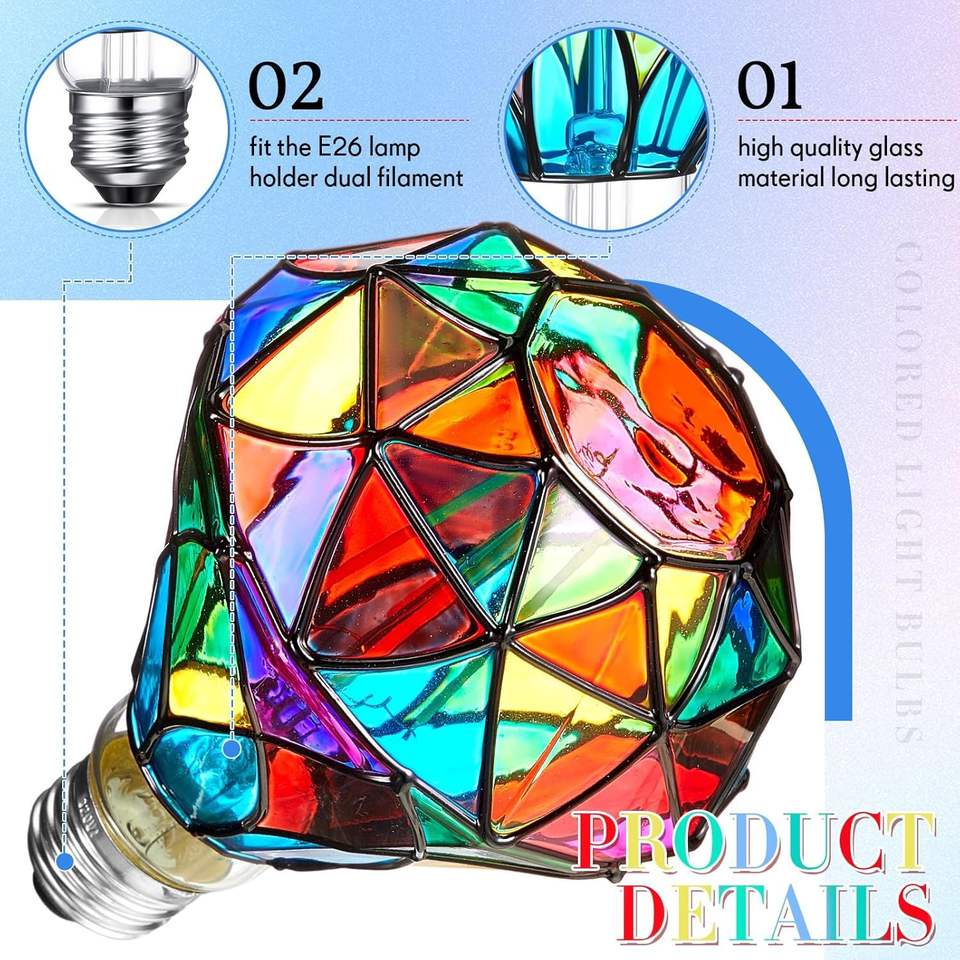 Ampoule LED A60 en verre teinté en forme de diamant et G95, scintillante et colorée, pour fête de Noël, base E26, 6 watts, 2 pièces