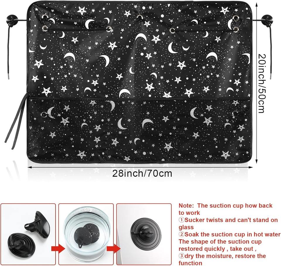 2 Pcs Pare-soleil pour fenêtre latérale de voiture pour enfants Rideau de protection UV avec filet de rangement Pocket Moon Star Patterns