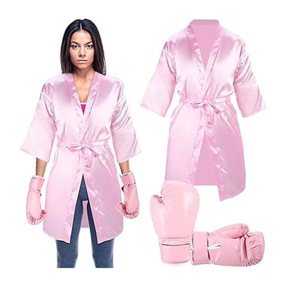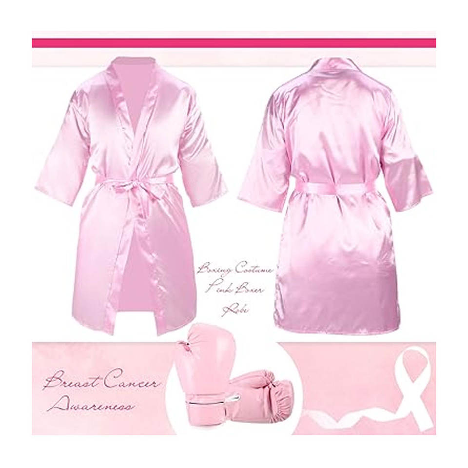 Ensemble de costumes de boxe pour Halloween, 2 pièces, robe de boxe et gants en satin rose XL pour la sensibilisation au cancer du sein, tenue de boxe pour femmes adultes