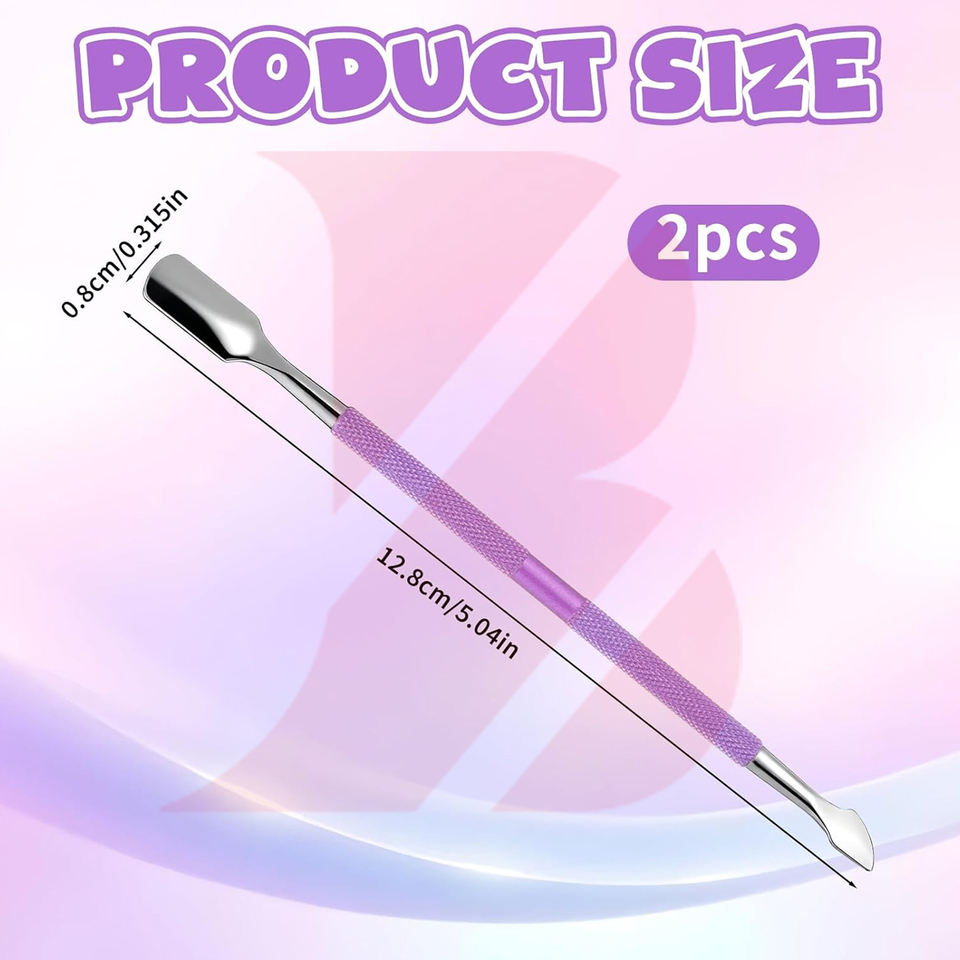 2 pièces Repousse-cuticules en acier inoxydable double extrémité, outil professionnel de nettoyage des ongles, poignée ergonomique antidérapante, antirouille pour