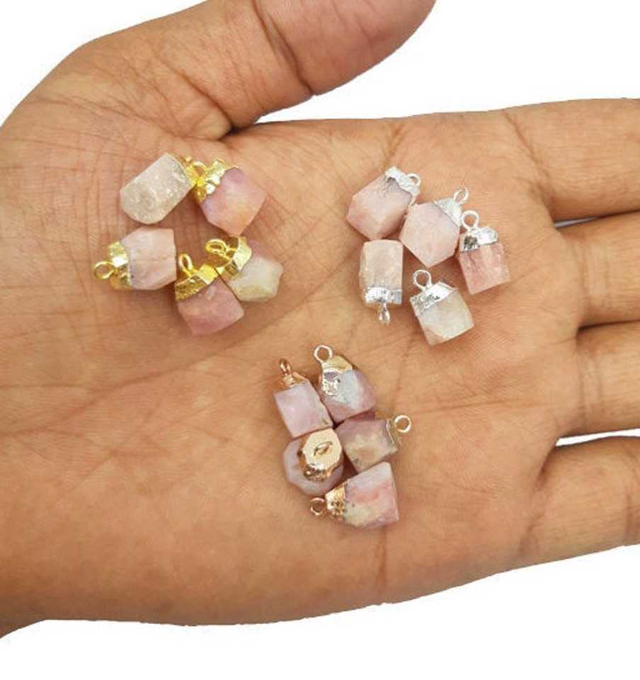 2 Breloques en Opale Rose brute, Plaquées, Pierre de Naissance