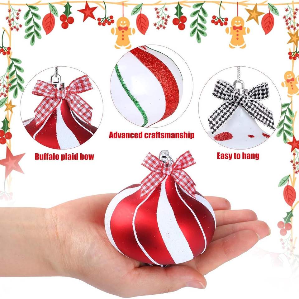 2 pièces de boules de bonbons à la menthe poivrée, rayures rouges et blanches suspendues, décorations de Noël pour arbre et fête