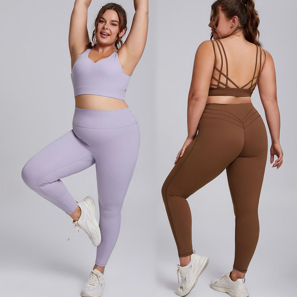 Ensemble de vêtements de sport élégants et stylés pour grandes tailles (jusqu'à 4XL) - 2 pièces : soutien-gorge de yoga à bretelles et leggings de sport très extensibles