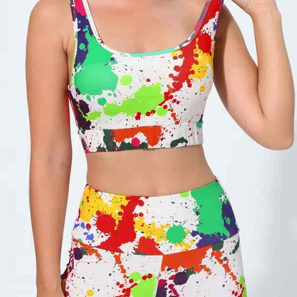 2 Pcs Reversible Solid Adult Size Yoga Sets Sports Bra Mid Waist Breathable Elastic Waist Workout Fitness Were