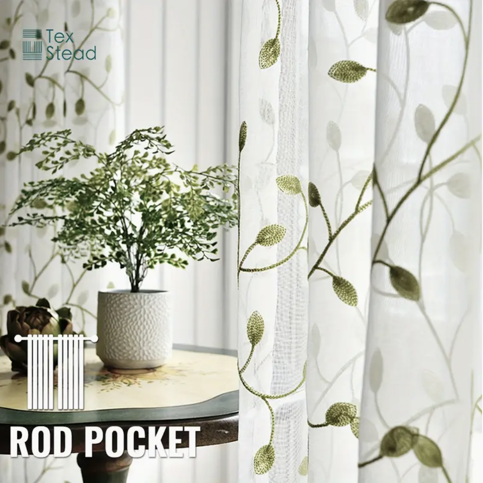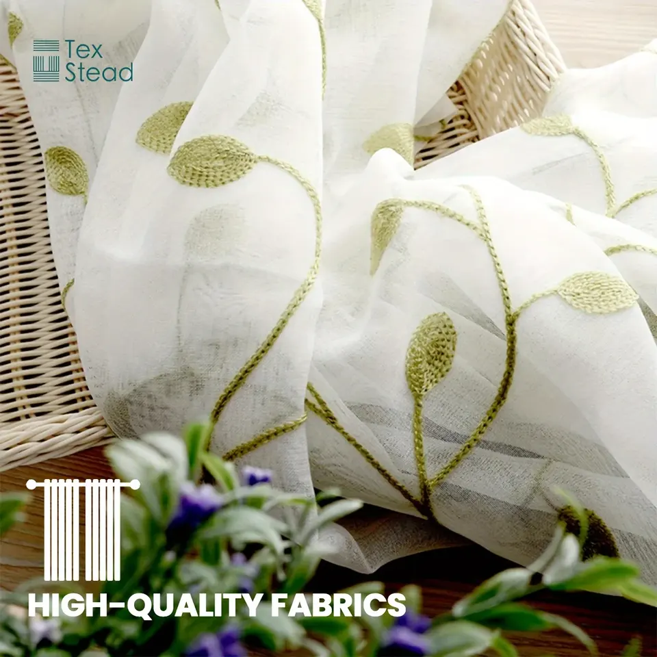 2 Pcs/Set Leaves Sheer Tier Curtain Taupe Leaf Embroidery Curtain Voile Linen Leaves Curtain for Bathroom Kitchen Home