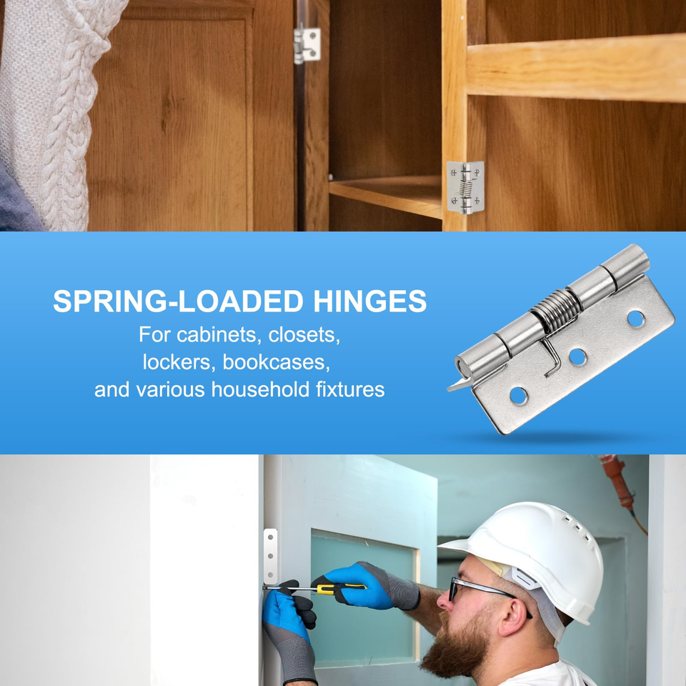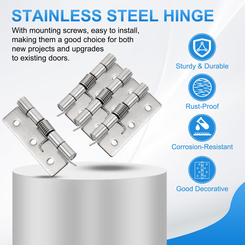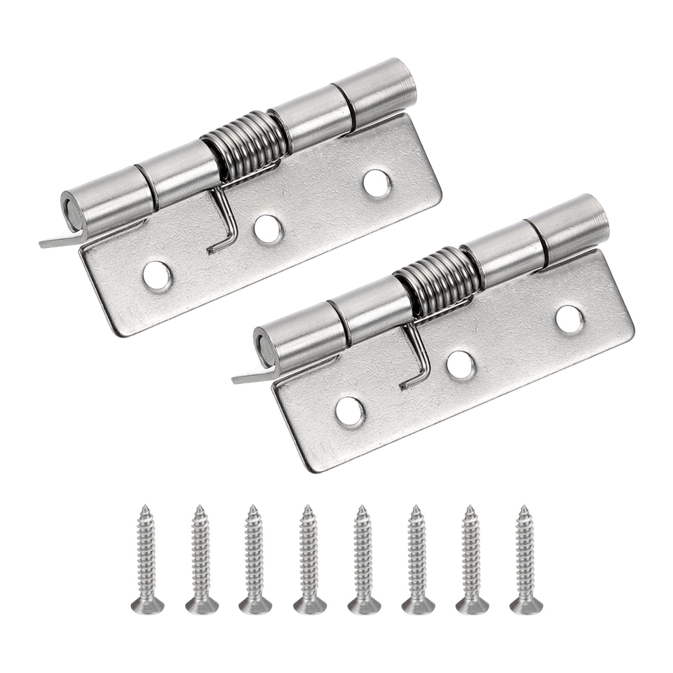 2 charnières à ressort, charnières de porte à fermeture automatique de 2,5 pouces, charnières de porte petites en acier inoxydable 304 avec vis pour porte d'armoire