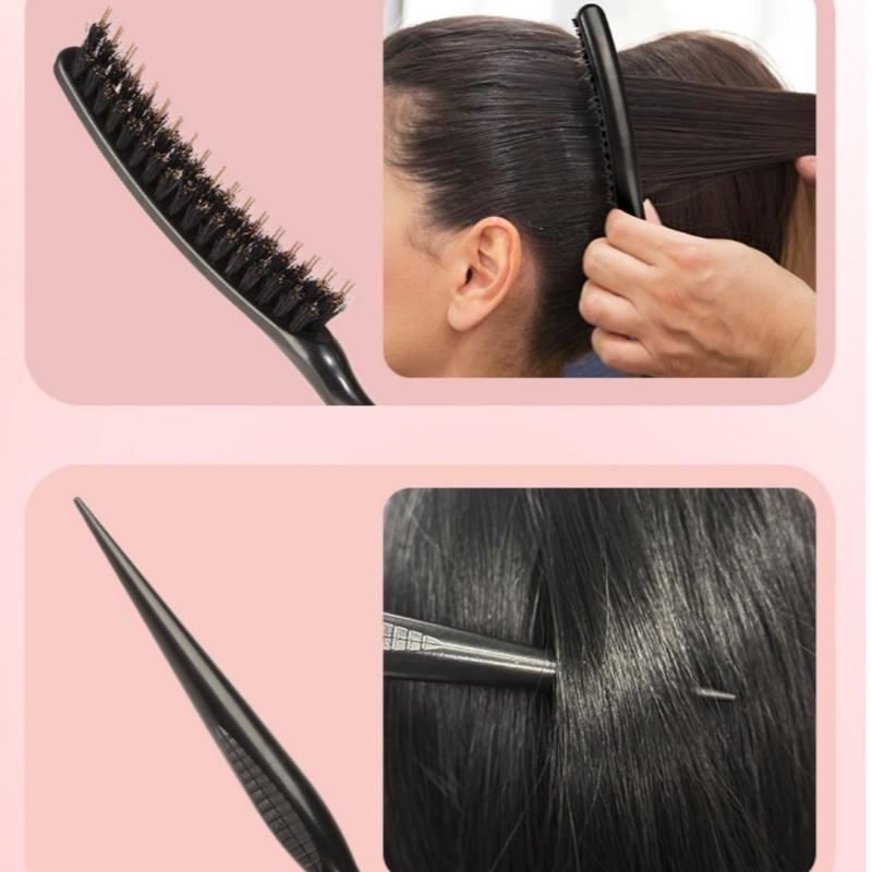 2 Pcs Teasing Brush Set Black Boar Bristle Hair Comb Nylon Boar Bristle Slick Back Brush for Women Men