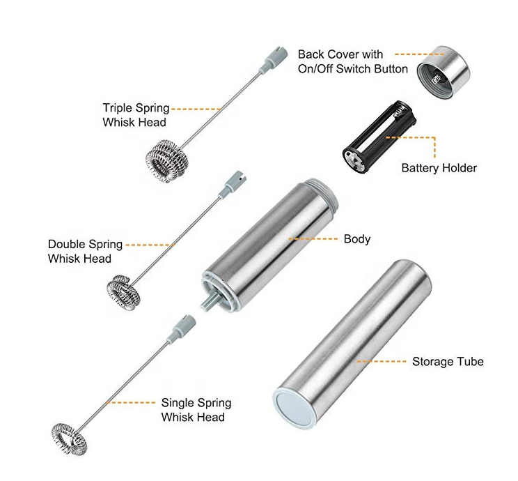 2 Pcs/packs Factory Buy Stainless Steel Electronic Cappuccino Hand Coffee Milk Frother Set With Egg Whisk