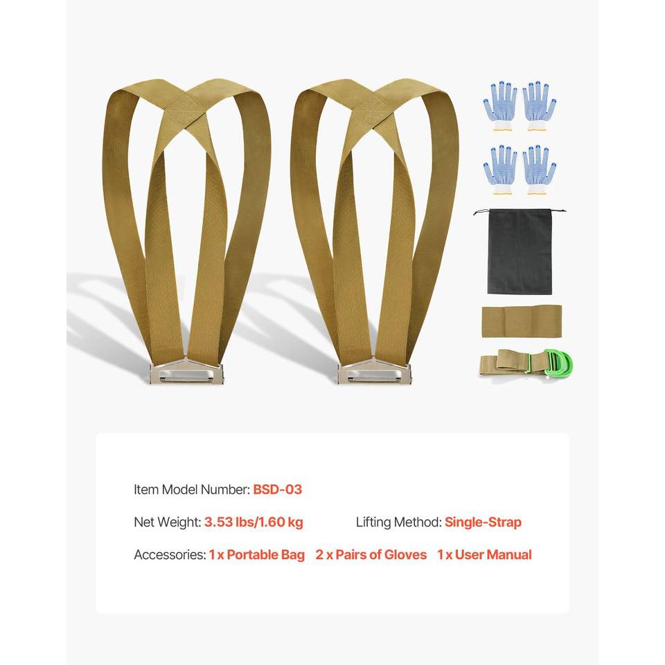 Sangles de levage réglables pour 2 personnes, système de sangles portatives et de support de charge, 1 sangle de levage pour un levage et un déplacement faciles