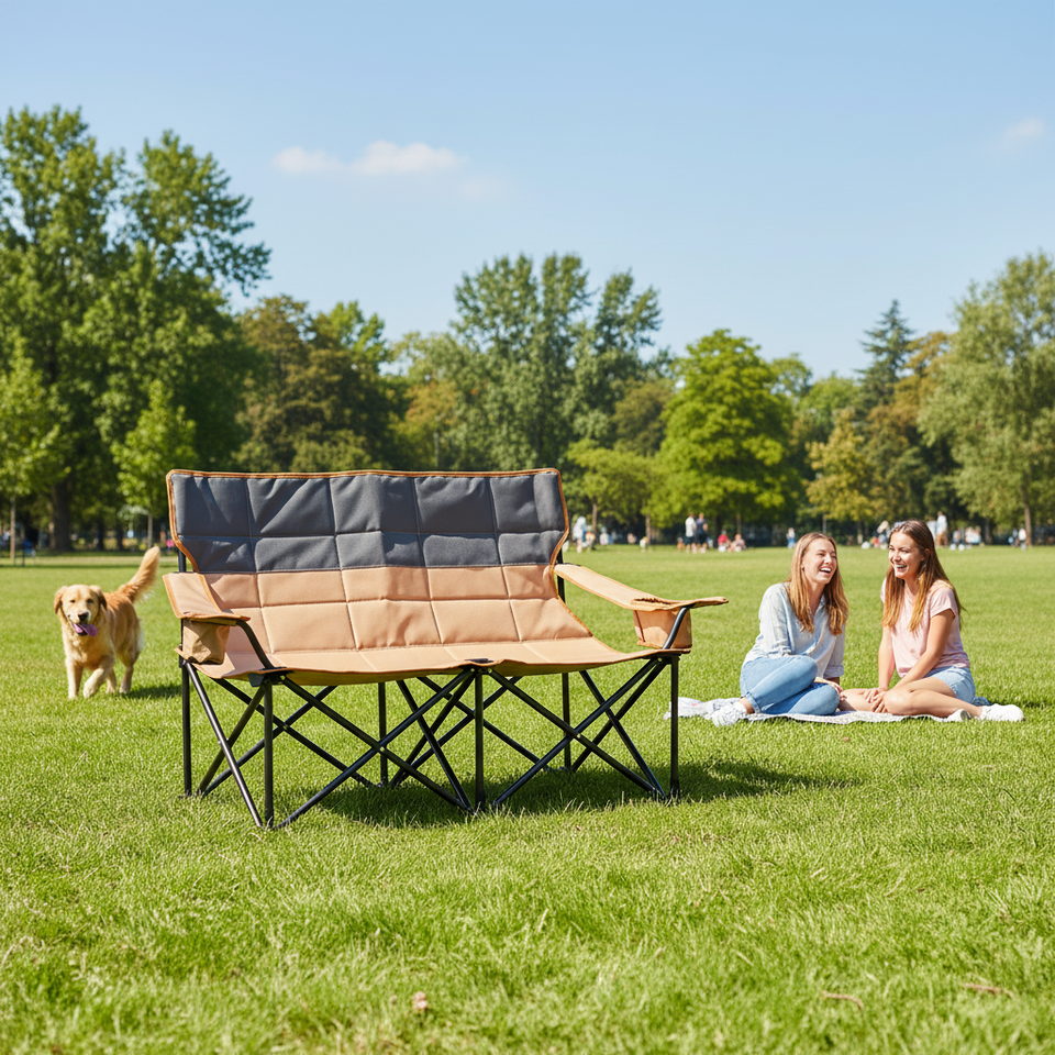 Chaise d'extérieur pliable rapide pour 2 personnes, cadre en acier au carbone, accoudoirs, portable, pliable, tissu Oxford - camping, pêche, atelier, extérieur