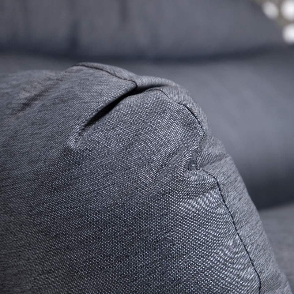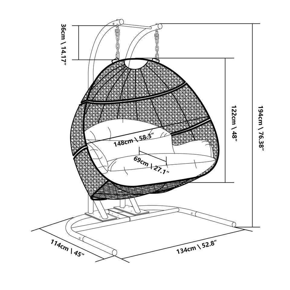 Fauteuil suspendu double en osier pour 2 personnes avec support et coussin bleu poussière (noir et bleu poussière) pour usage extérieur