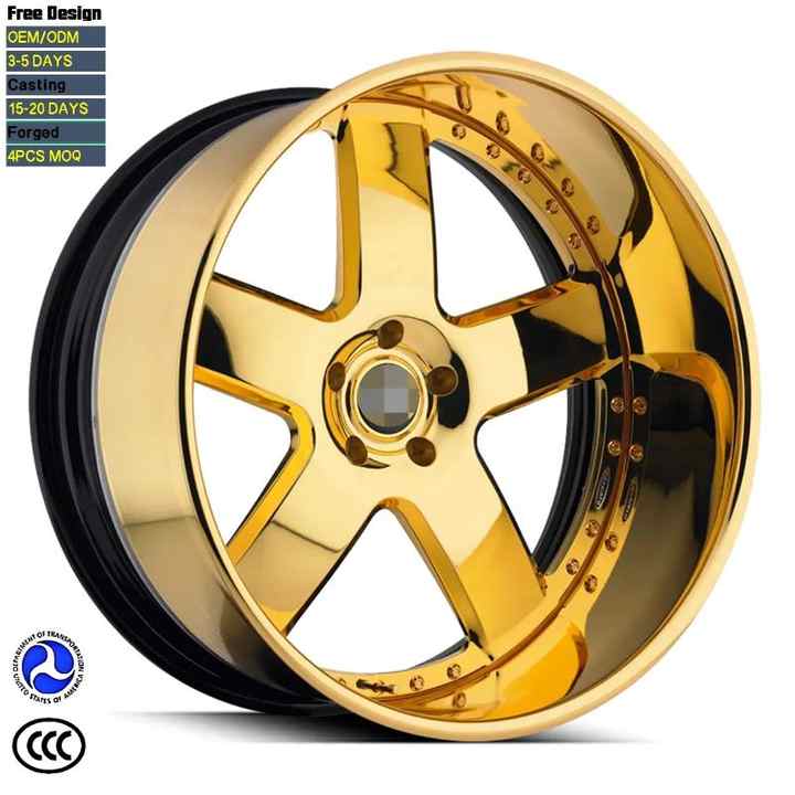 Jantes forgées sur mesure 2 pièces 3 pièces 20 21 22 24 pouces Or Chrome Deep Dish 5 branches 6061-t6 Aluminium pour voiture de tourisme Lexus