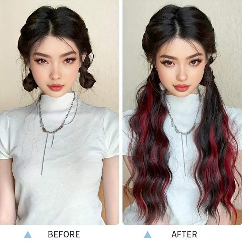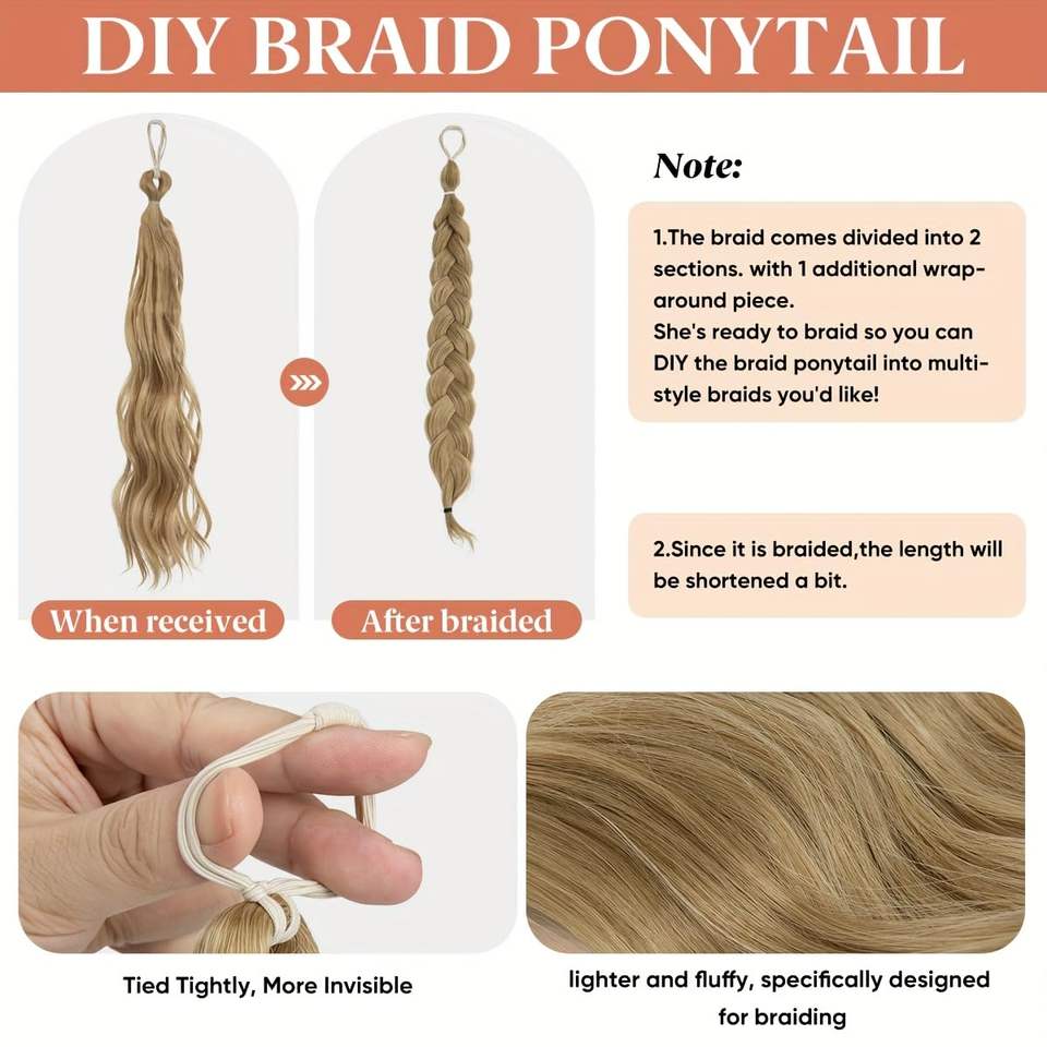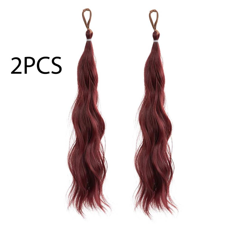 Lot de 2 extensions de cheveux tressées bouclées/ondulées, chignon élastique, postiches épaisses pour queue de cheval, 35 cm, pour femme (rouge bordeaux)