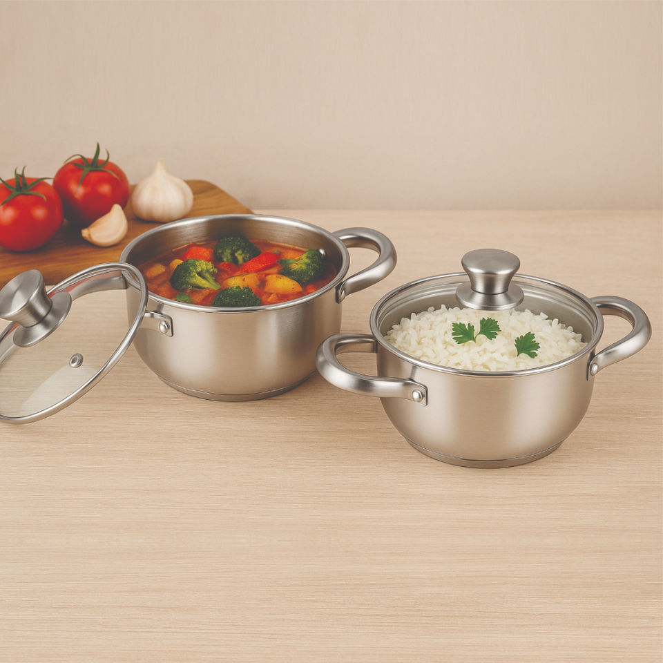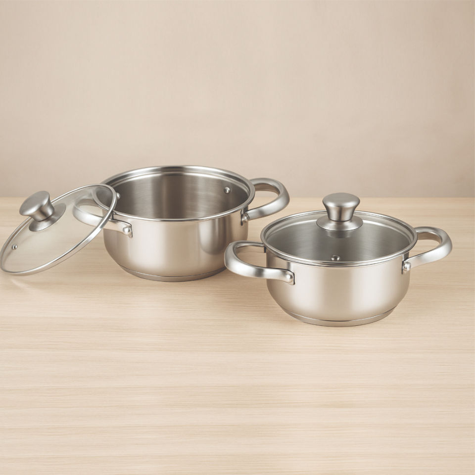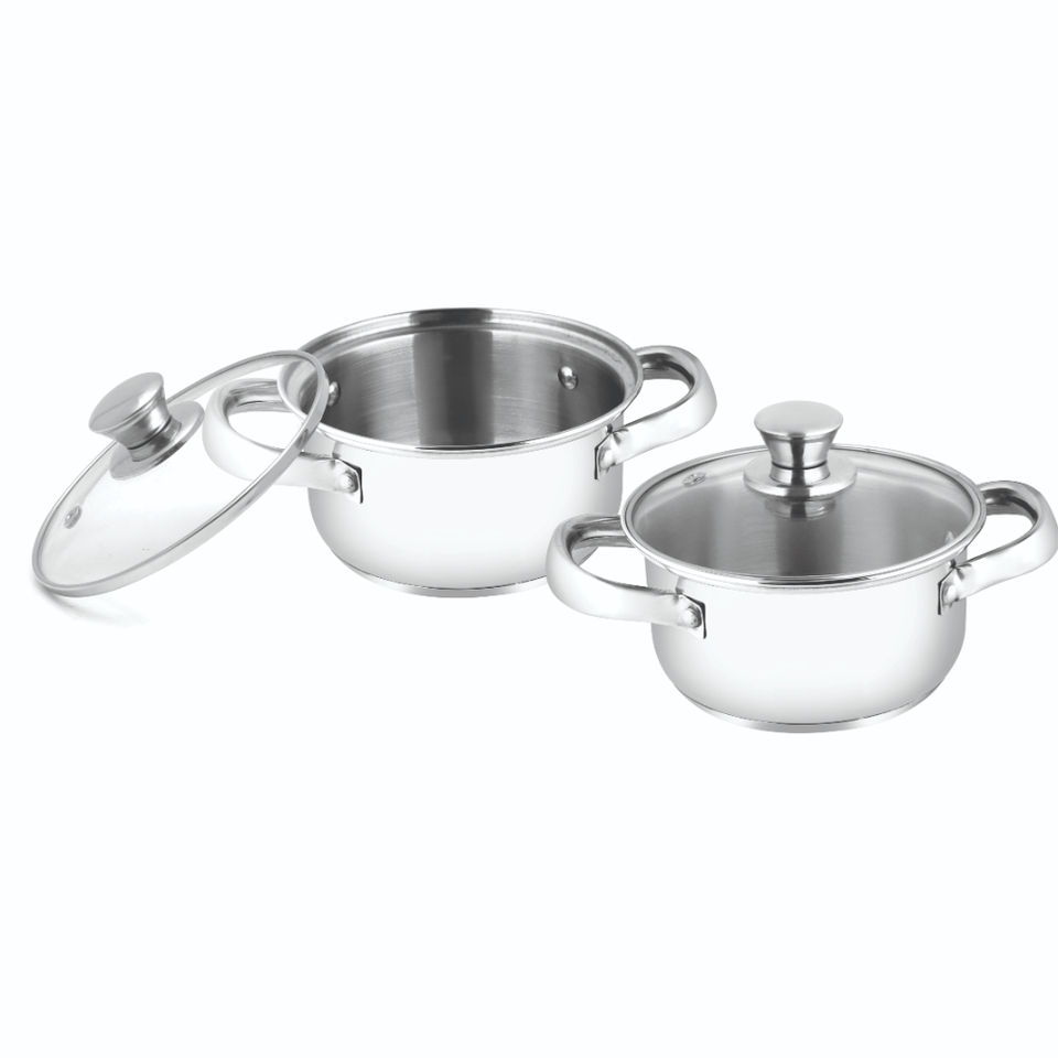 2 Piece Classic Durable Stainless Steel Capsulated Casserole Set with Glass Lids and Induction Base Healthy Oven Safe
