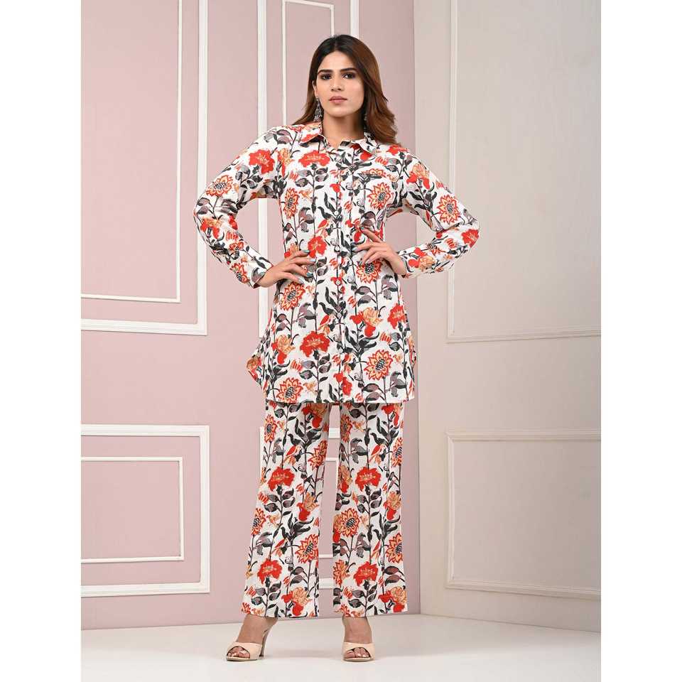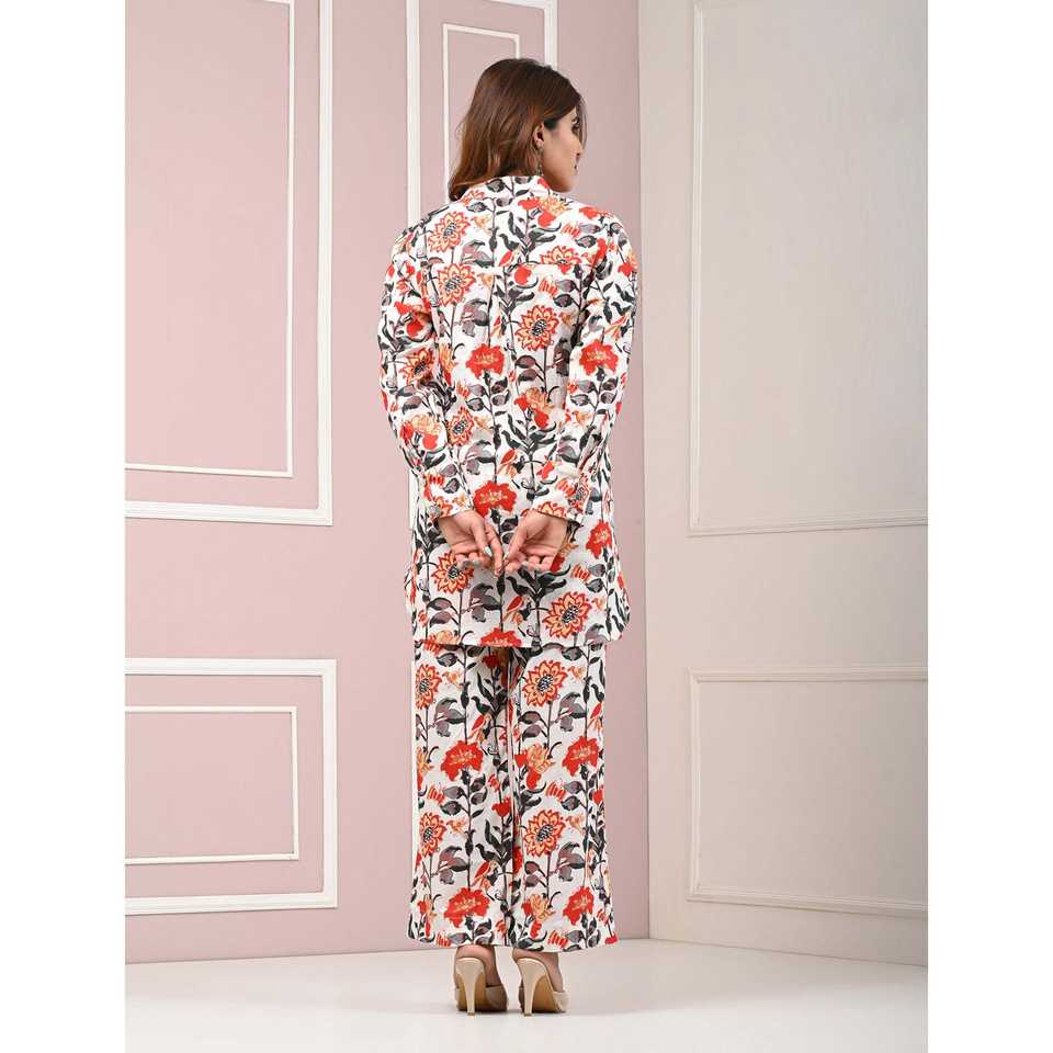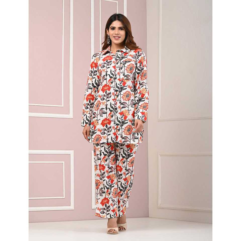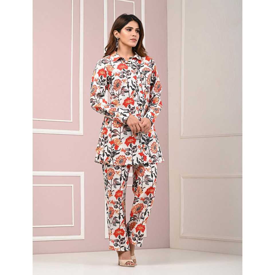 Ensemble coordonné 2 pièces en coton blanc et rouge taille 3XL, tenue d'été imprimée avec haut à boutons et short