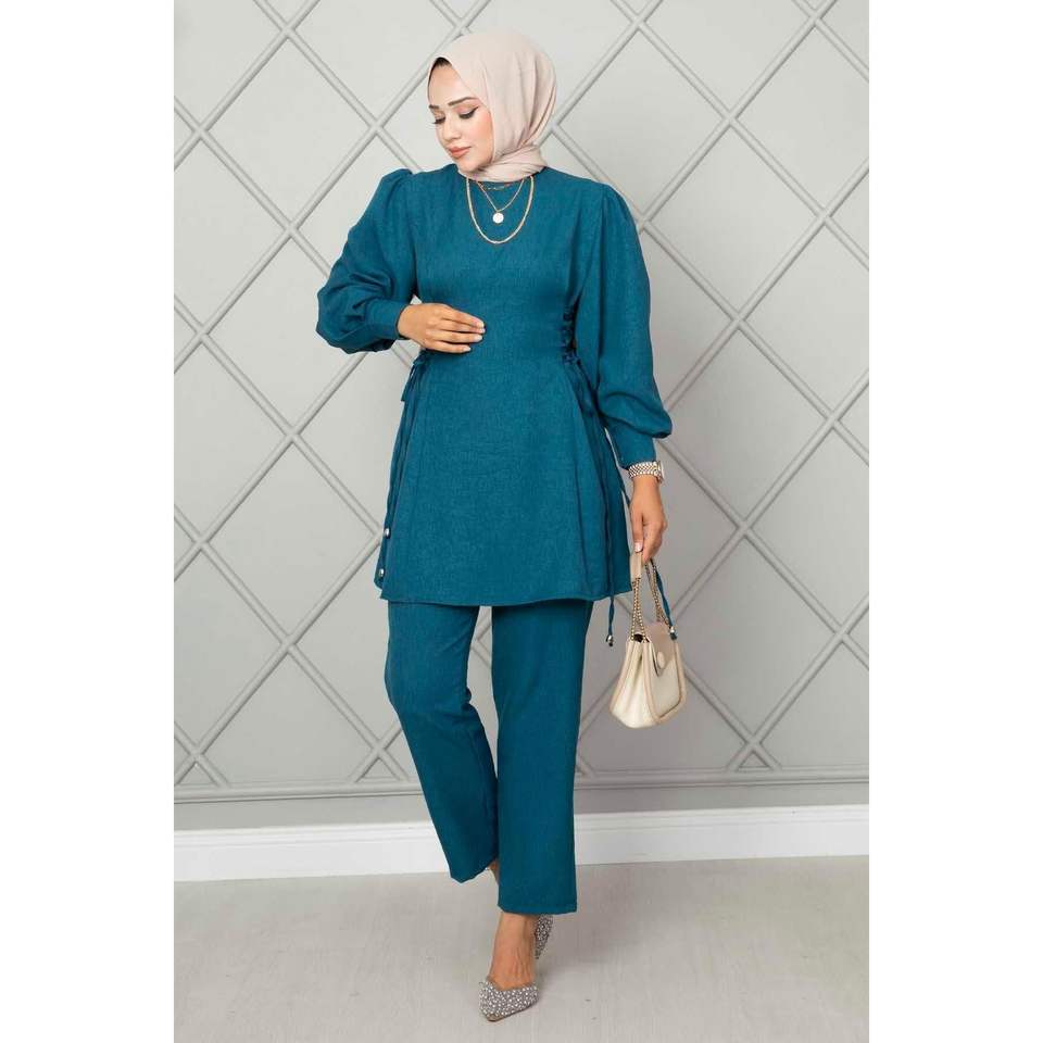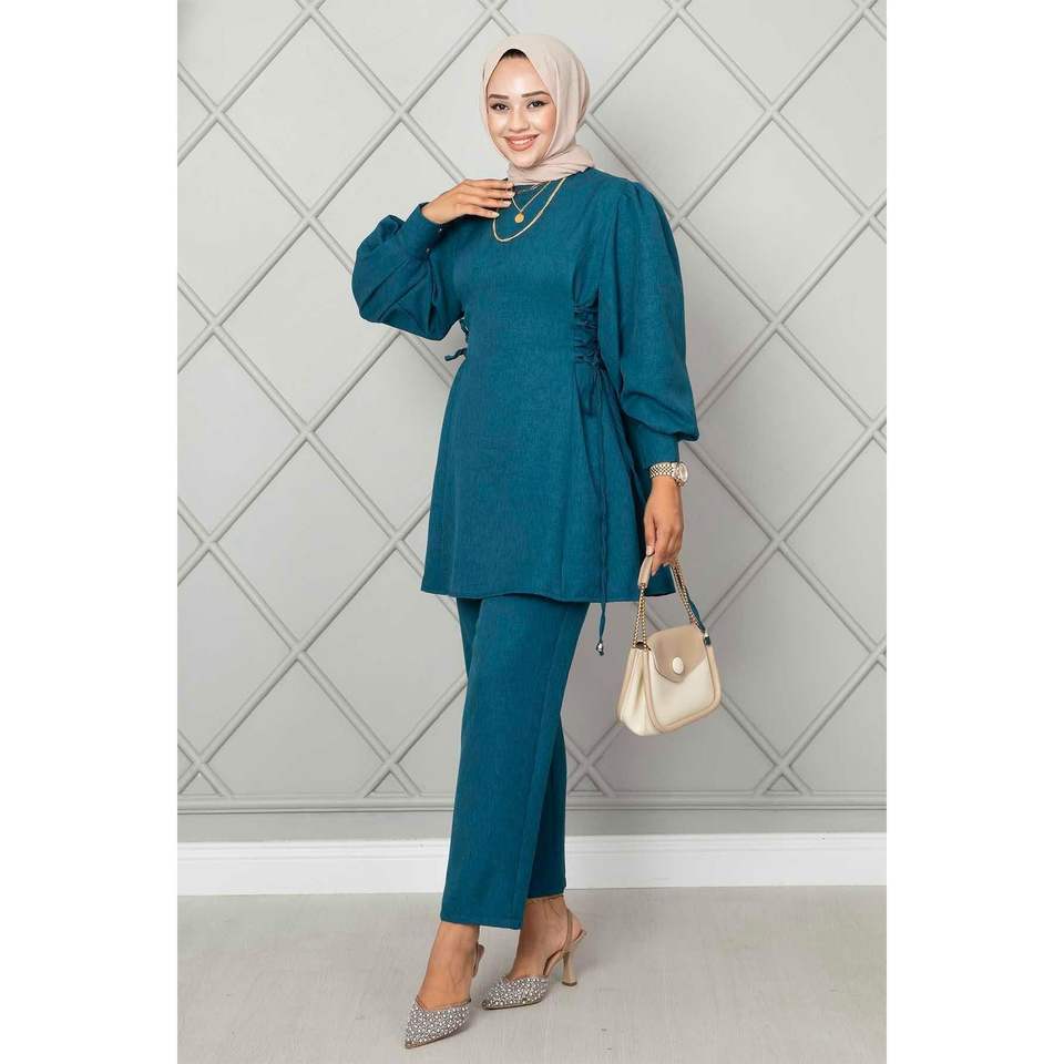Ensemble hijab en lin 2 pièces noué sur le côté et couleur essence