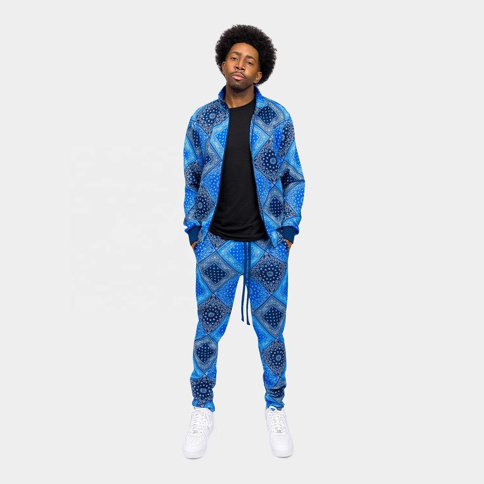 Ensemble de survêtements athlétiques 2 pièces pour hommes Sweat à capuche à manches longues imprimé sur mesure avec mélange 100% de polyester et d'élasthanne respirant
