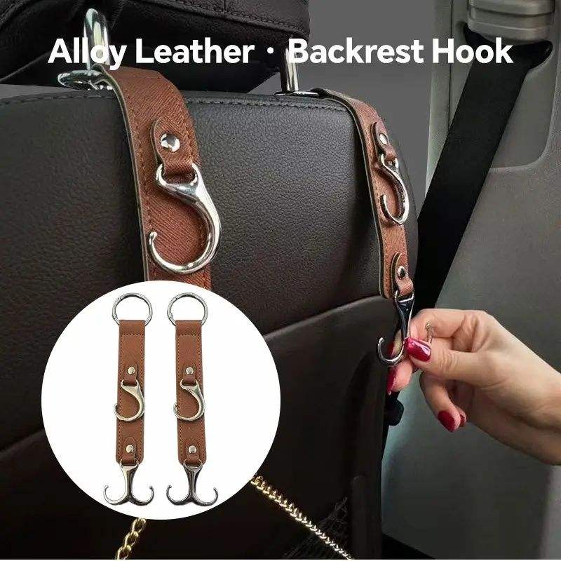 Crochets multifonctionnels 2-en-1 en similicuir pour appuie-tête de voiture, crochets de rangement pour dossier de siège auto en PU
