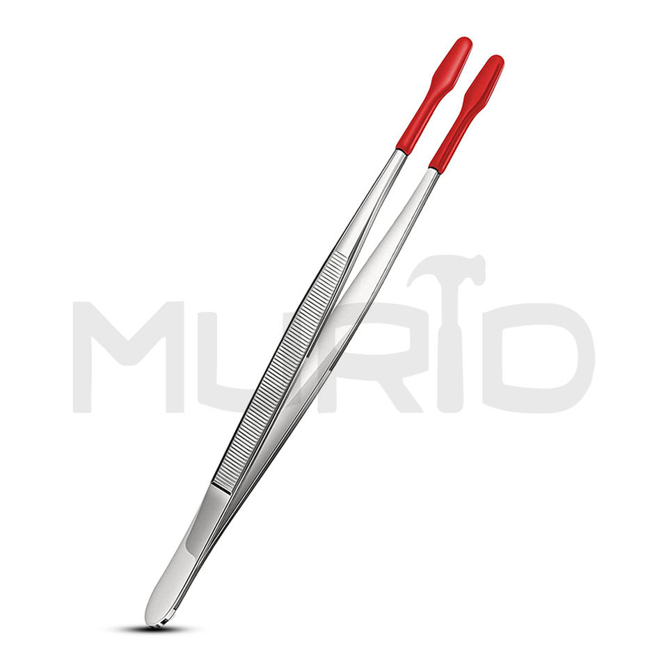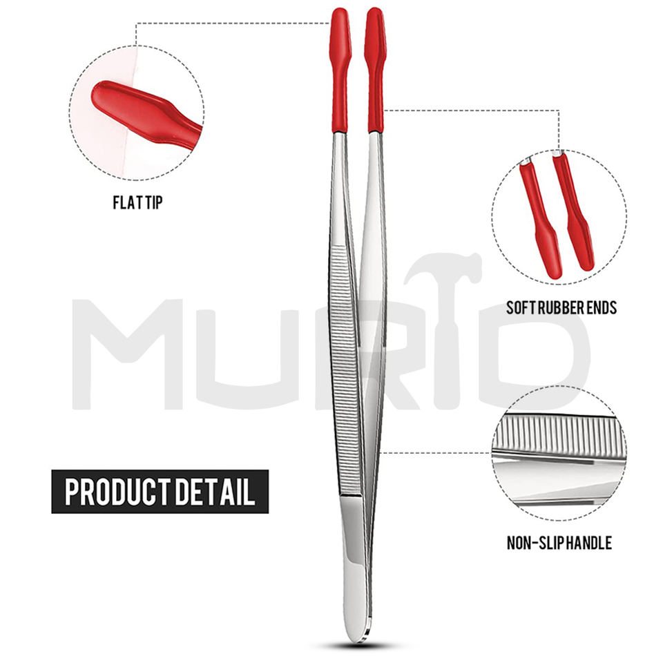 Pince à épiler de laboratoire de précision 2 pièces en caoutchouc de silicone PVC avec poignée en acier inoxydable de haute qualité-Rouge