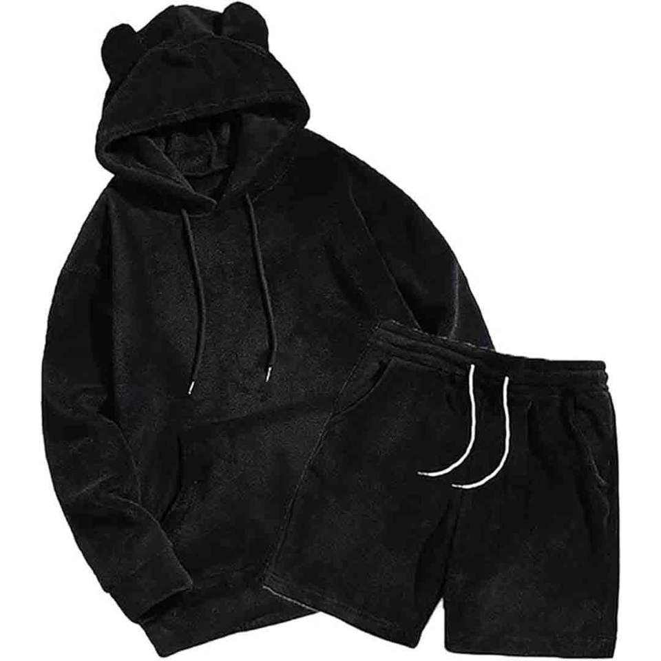 Ensemble de survêtement 2 pièces en molleton doux, sweat-shirt à capuche à manches longues et short