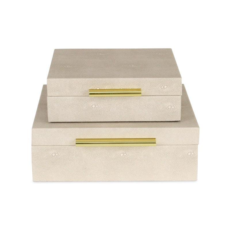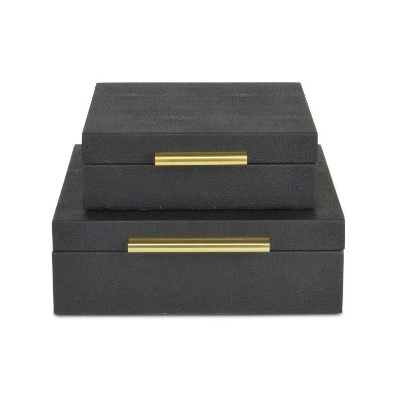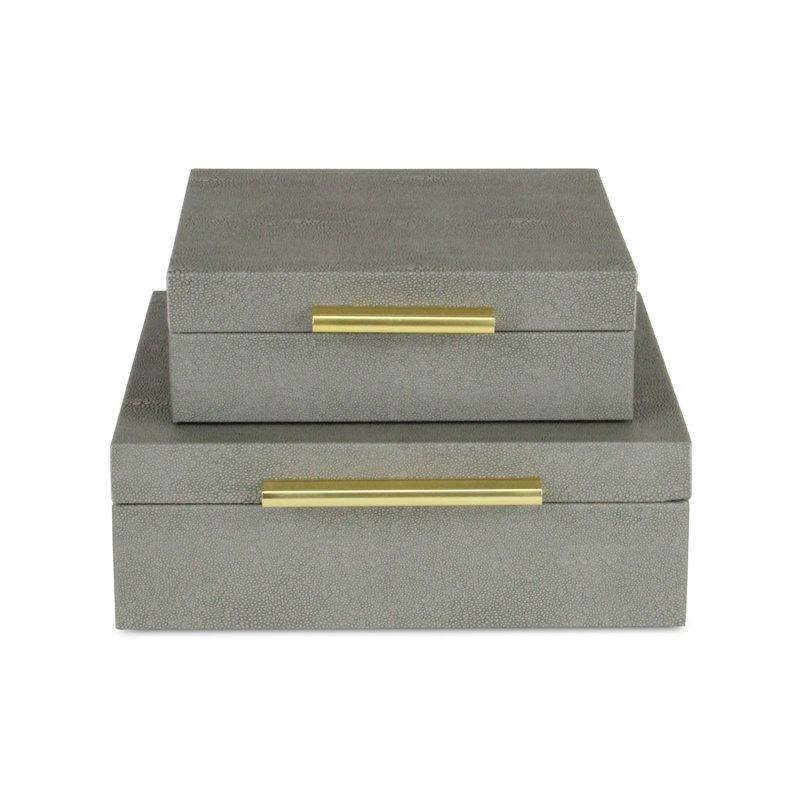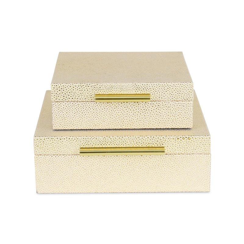 Conteneurs carrés de stockage de bijoux de 2 pièces, boîte à bijoux décorative en faux cuir de galuchat avec poignée dorée de style moderne