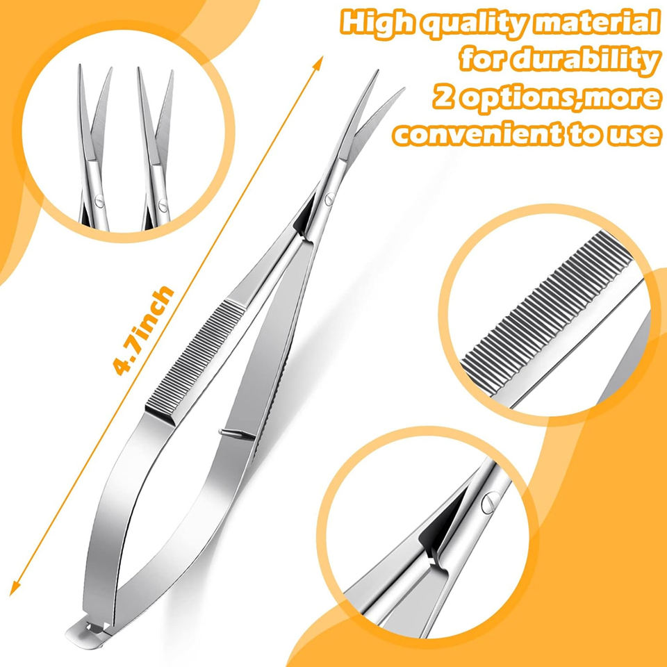 Micro Spring Scissors Stainless Steel 2 Pieces 4.7 Inch Curved Tip Sharp Embroidery Sewing Snips Eyebrow Trimming Beauty Tool