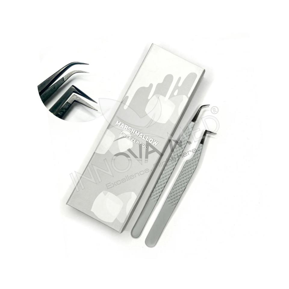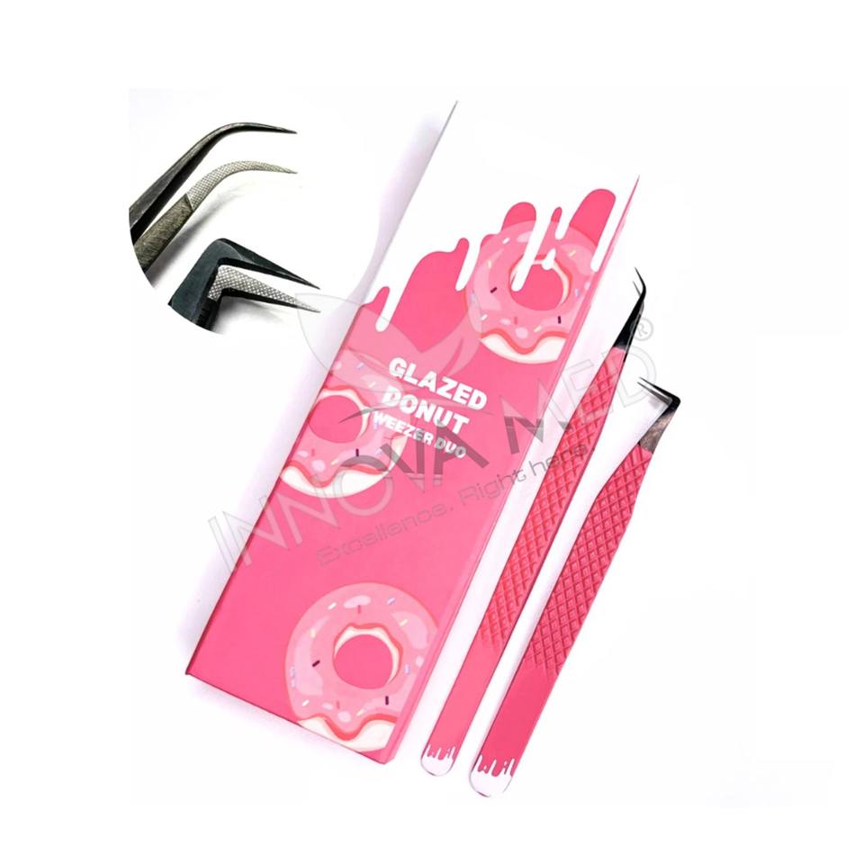 Lot de 2 pinces à cils pointues de précision pour extension de cils Volume Set Coconut Milk Color Matching Carton Box Packaging