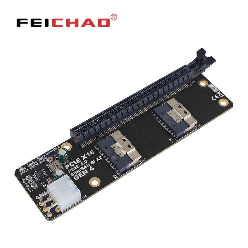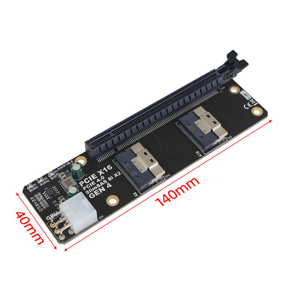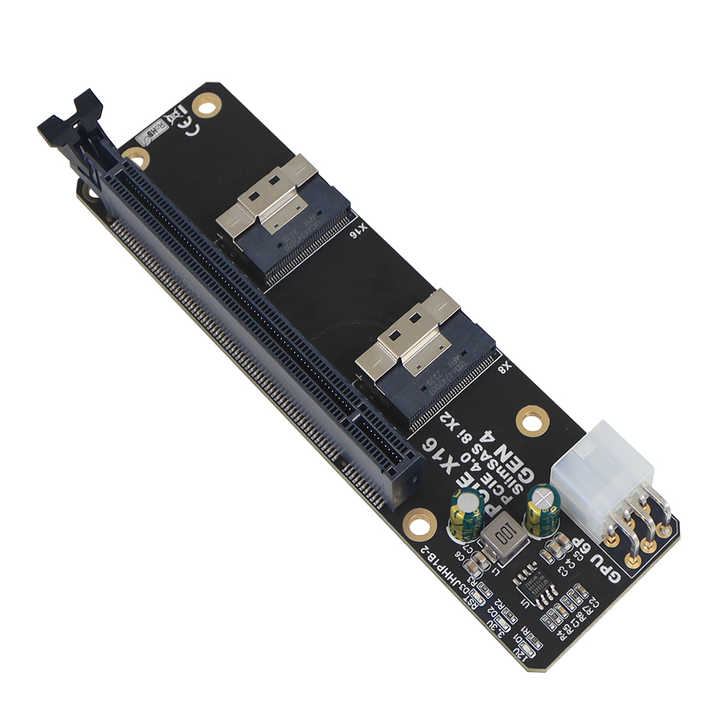 Convertisseur 2 ports SlimSAS 8i x2 vers PCIE 4.0x16 sff8654 Carte GEN4 JHHP1B pour carte réseau Carte graphique vidéo GPU 6Pin Power