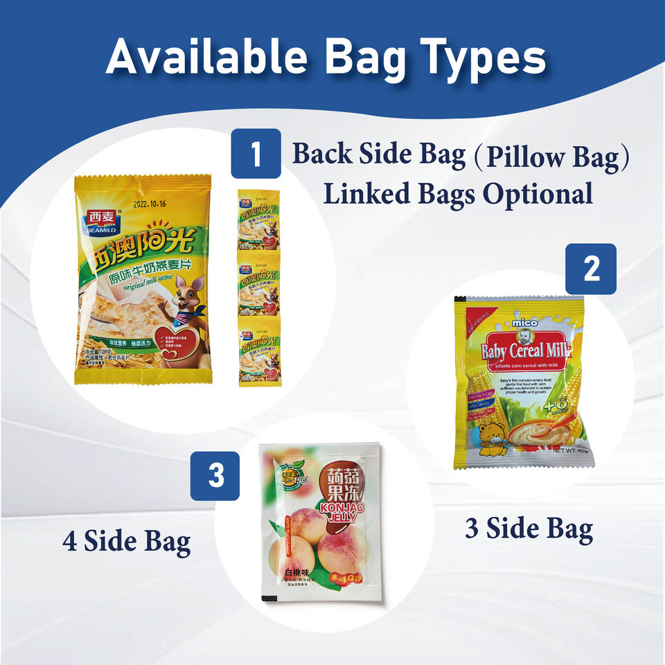 Sachet type:Back side sealed/Pillow pack (option for 3 side and 4 side)