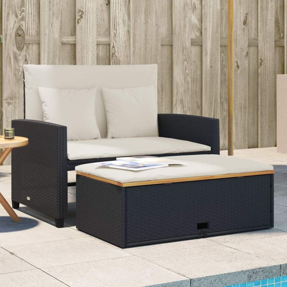Canapé de jardin 2 places en polyrotin noir pour usage extérieur