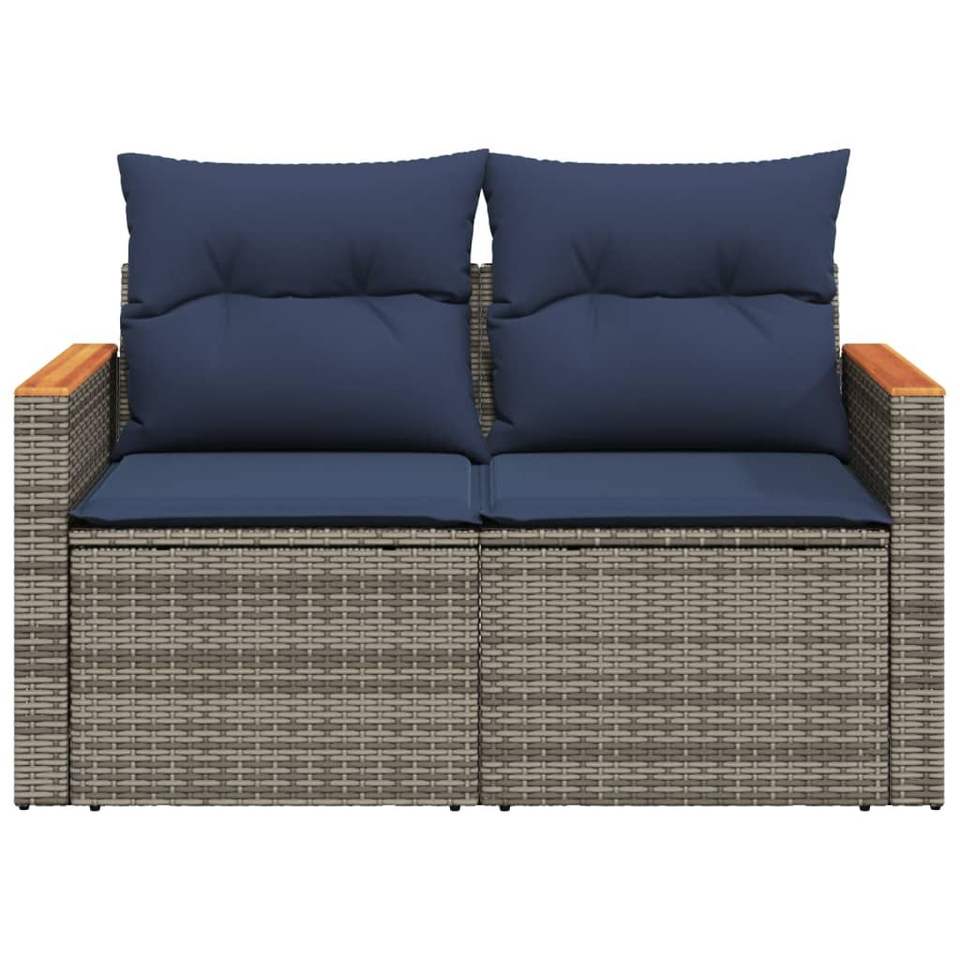 Canapé de patio 2 places en polyrotin gris avec coussins, mobilier d'extérieur durable