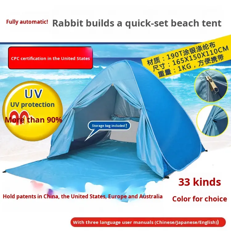 Tente de plage à ouverture rapide en 2 secondes Pare-soleil extérieur entièrement automatique Tente en polyester imperméable Fabricant Fourniture directe